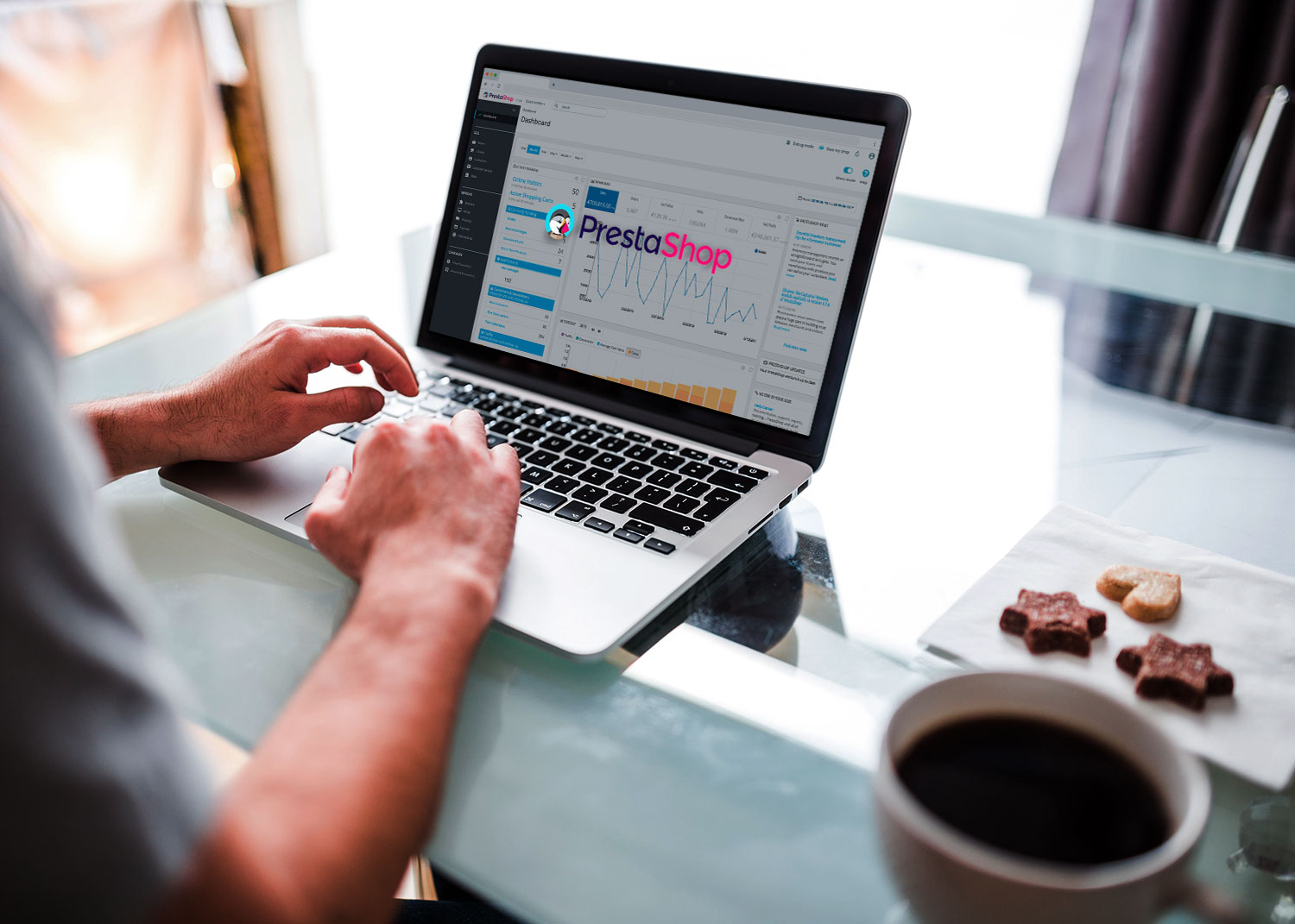 Prestashop es un CMS (Content Management System o Sistema de Gestión de Contenidos) gratuito e intuitivo específicamente diseñado para la creación y gestión completa de tiendas online, por lo que es perfecta para desarrollar un eCommerce desde cero. Además de programar las funcionalidades básicas de la tienda online, la interfaz permite establecer diferentes métodos de pago, aplicar mejoras gráficas y promociones, así como realizar un seguimiento deltráfico de usuarios y usar el localizador de envíos en tus pedidos.